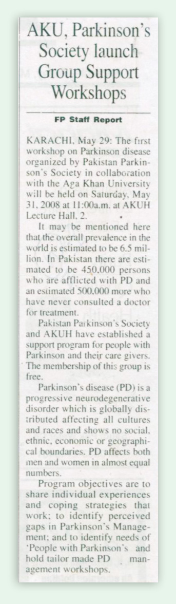 Heading: AKU, Parkinson's Society launch Group Support Workshops